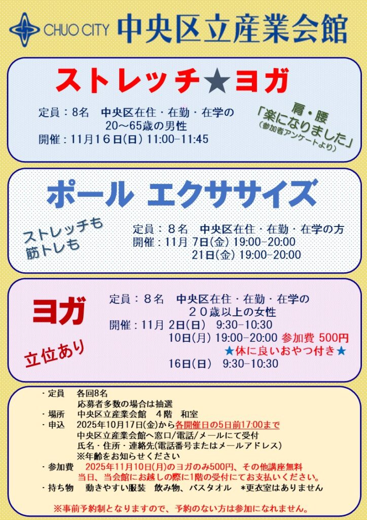 中央区立産業会館を管理・運営していくにあたり、収集及び作成をした個人及び団体に関する情報(データベースを含む。)などの個人情報の取扱いについては、「個人情報の保護に関する法律」及び「中央区個人情報の保護に関する条例」、「同条例施行規則」に基づき、慎重かつ適