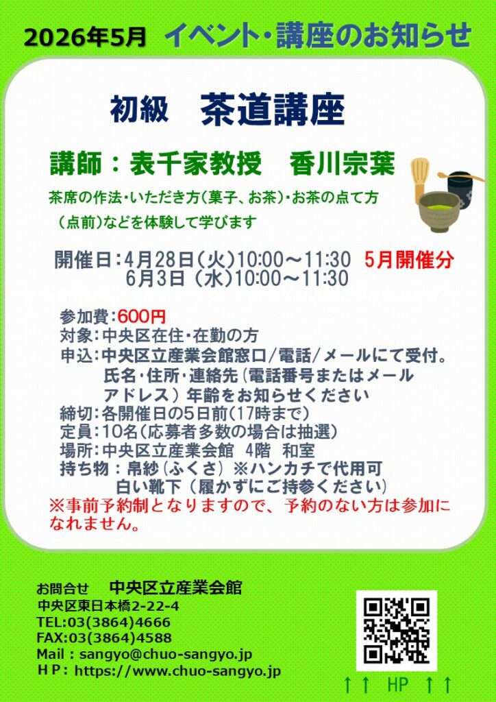 2026年5月の『講座・イベント』は以下のとおりです。